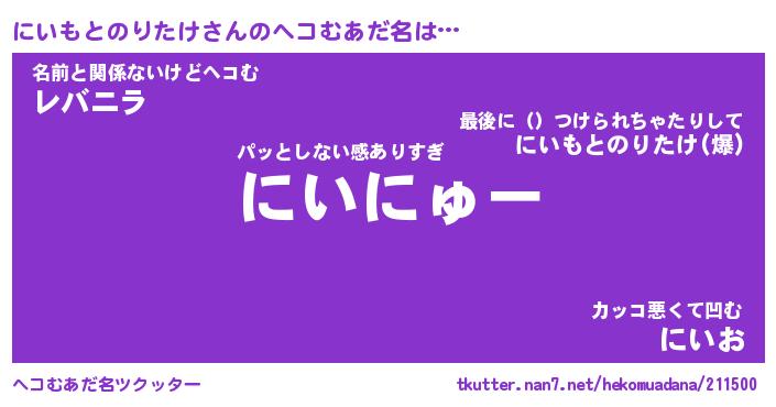 | 2回繰り返すあだ名 | 『にいにい』『ににいい』『ぬるぬる』 |