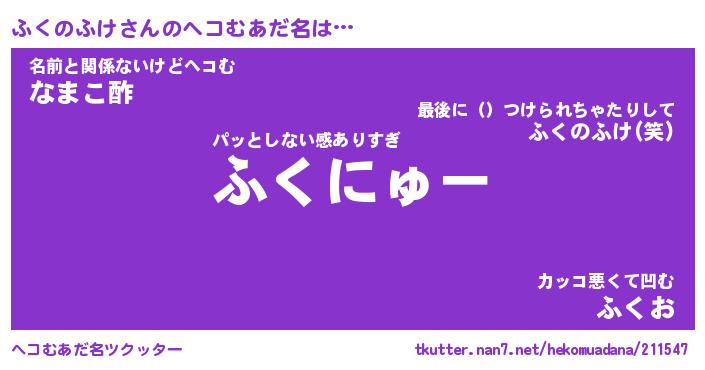 | 男性向けラノベタイトル風あだ名 | 『ふくのふけの憂鬱』 |