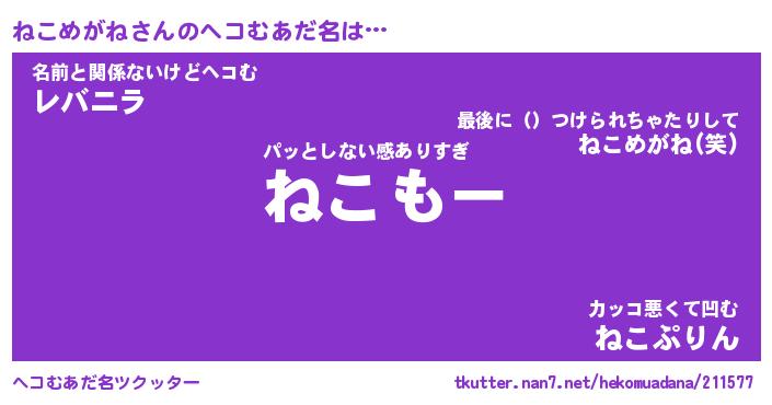| 自動車の名前っぽいあだ名 | 『ネコティマ』『ネスラー』『ネント』 |