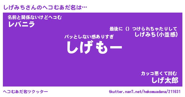 | 意味不明あだ名 | 『ペロリンしげみち』『永久保存しげみち』 |