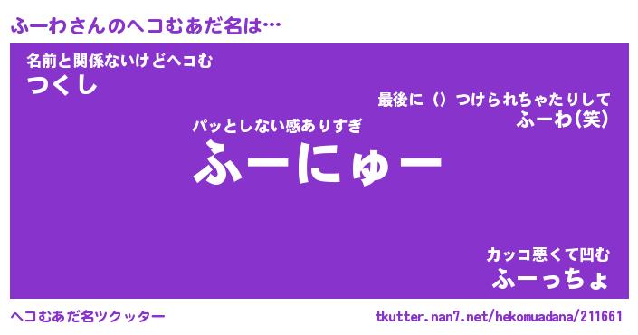 | ファンタジー風あだ名 | 『フーフェル』『エターナルフーワー』 |