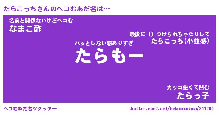 | ファンタジー風あだ名 | 『タラフェル』『エターナルタラコッチー』 |