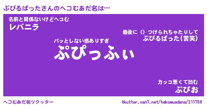 | ツイッター | ぷぴるぱったさんのツイッターID『renkon_nyan』 |