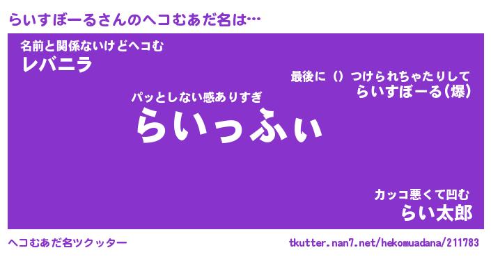 | 可愛いあだ名 | 『らんらん』『らいちー』 |