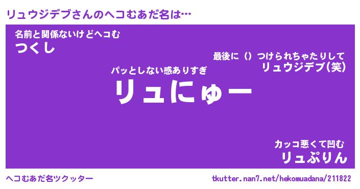 | ヒーロー風カッコイイあだ名 | 『スーパーリュウジデブ』『暗黒騎士リュ』 |