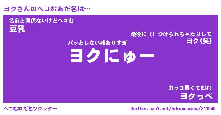 | 自動車の名前っぽいあだ名 | 『ヨクティマ』『ヨクア』『ヨント』 |
