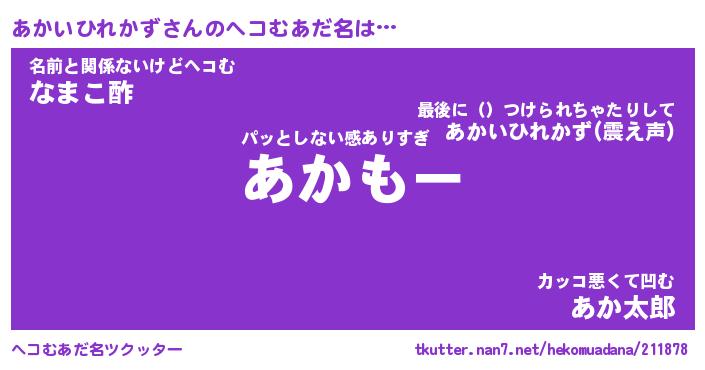 | 恥ずかしいあだ名 | 『プリティーあかいひれかず』『あかちん』 |
