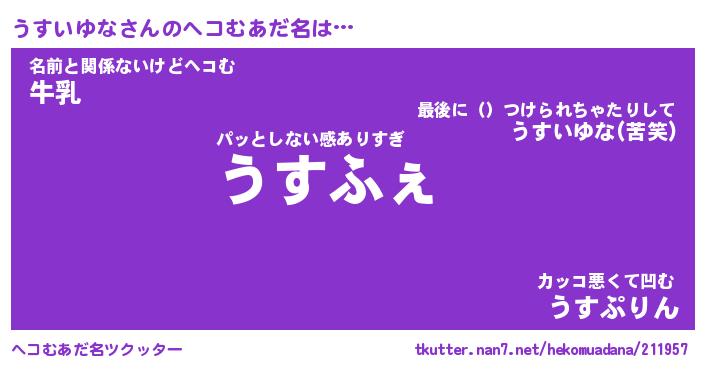 | 意味不明あだ名 | 『ペロリンうすいゆな』 |