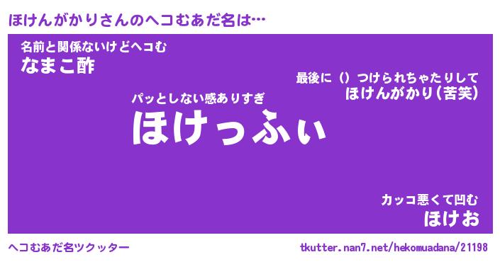 | 2回繰り返すあだ名 | 『ほけほけ』『ほほけけ』『うねうね』 |