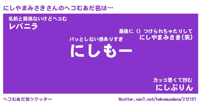 | 恥ずかしいあだ名 | 『プリティーにしやまみさき』『にしちん』 |