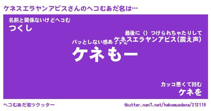 ケネスエラヤンアビスさんのヘコむあだ名をツクッター!