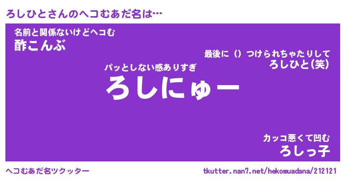 | 男性向けラノベタイトル風あだ名 | 『ろしひとの憂鬱』 |