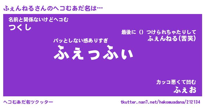 | 男性向けラノベタイトル風あだ名 | 『ふぇんねるの憂鬱』 |