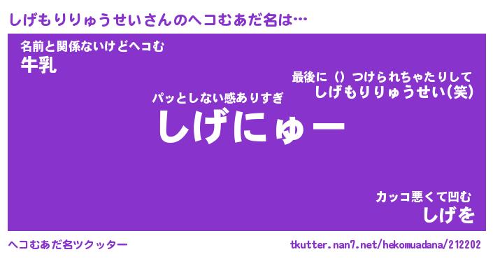 | 意味不明あだ名 | 『ペロリンしげもりりゅうせい』 |