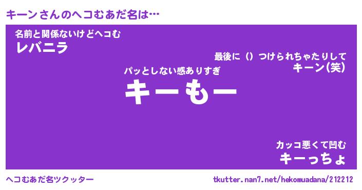 | 意味不明あだ名 | 『ペロリンキーン』『キーンフォーエバー』 |