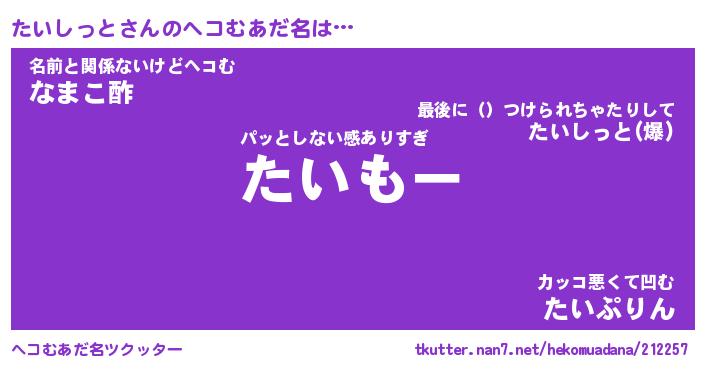 | 恥ずかしいあだ名 | 『プリティーたいしっと』『たいっちょ』 |