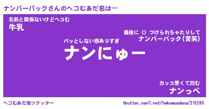 | 男性向けラノベタイトル風あだ名 | 『ナンバーバックの憂鬱』 |