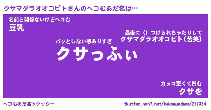 | 2回繰り返すあだ名 | 『クサクサ』『ククササ』『あんあん』 |