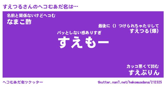 | 意味不明あだ名 | 『ペロリンすえつる』『永久保存すえつる』 |
