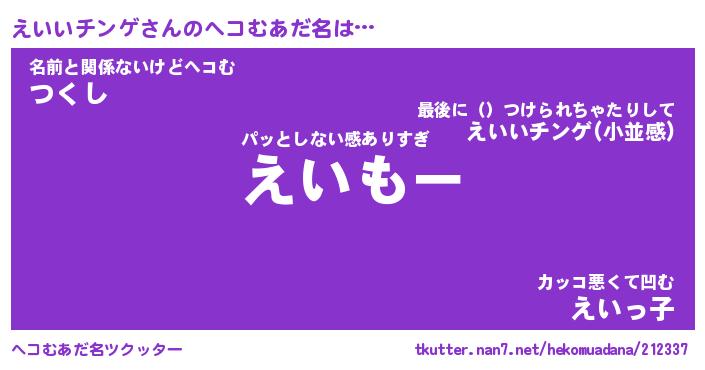 | 恥ずかしいあだ名 | 『プリティーえいいチンゲ』『えいっちょ』 |