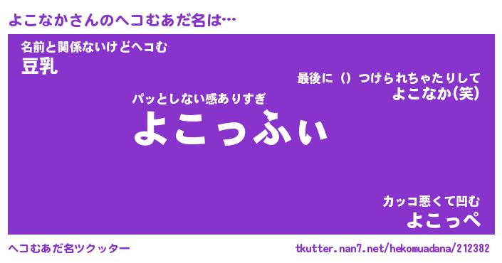 | 意味不明あだ名 | 『ペロリンよこなか』『永久保存よこなか』 |