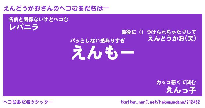 | 恥ずかしいあだ名 | 『プリティーえんどうかお』『えんっちょ』 |