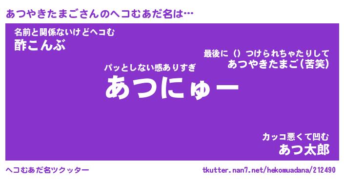 | 欧米人風あだ名 | 『マイケルあつやきたまご』 |