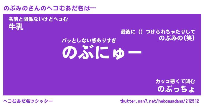 | 意味不明あだ名 | 『ペロリンのぶみの』『永久保存のぶみの』 |