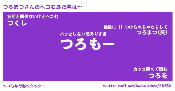 | 2回繰り返すあだ名 | 『つろつろ』『つつろろ』『うねうね』 |