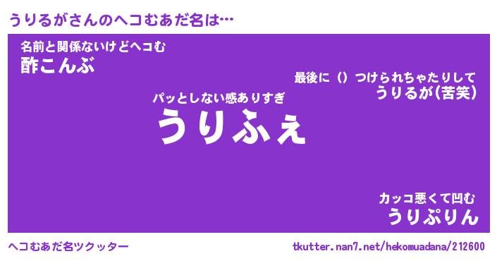 | 意味不明あだ名 | 『ペロリンうりるが』『永久保存うりるが』 |