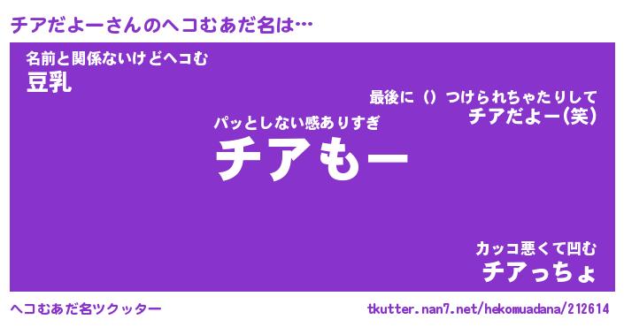 | 2回繰り返すあだ名 | 『チアチア』『チチアア』『おたおた』 |