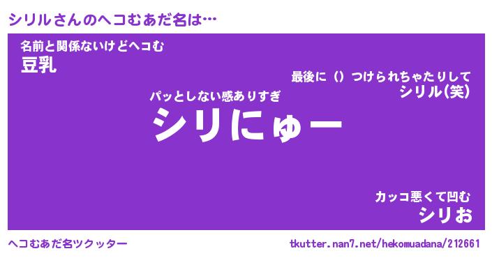 | 恥ずかしいあだ名 | 『プリティーシリル』『シリっちょ』 |