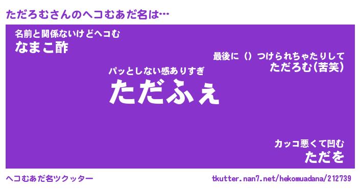 | ファンタジー風あだ名 | 『タダフェル』『エターナルタダロムー』 |