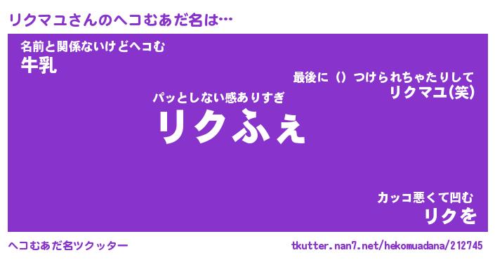 | ファンタジー風あだ名 | 『リクフェル』『エターナルリクマユー』 |