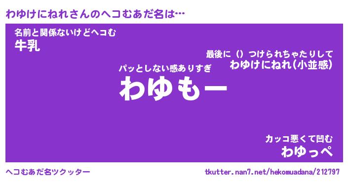 | 2回繰り返すあだ名 | 『わゆわゆ』『わわゆゆ』『ぬるぬる』 |
