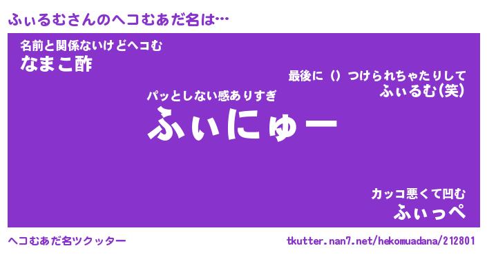 | 2回繰り返すあだ名 | 『ふぃふぃ』『ふふぃぃ』『うるうる』 |