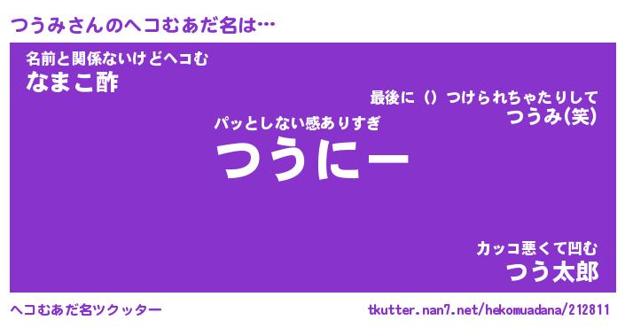 | ヒーロー風カッコイイあだ名 | 『スーパーツウミ』『ウルトラつうみマン』 |
