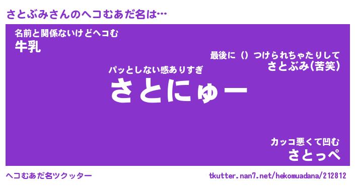 | 男性向けラノベタイトル風あだ名 | 『さとぶみの憂鬱』 |