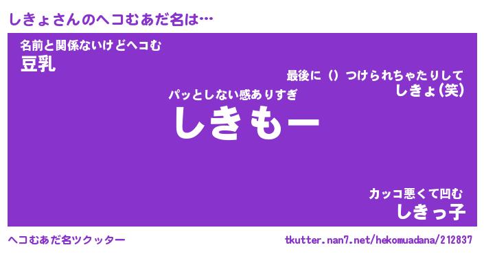 | 意味不明あだ名 | 『ペロリンしきょ』『しきょフォーエバー』 |