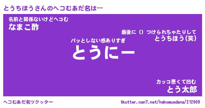 | ヒーロー風カッコイイあだ名 | 『スーパートウチホウ』『銀牙騎士トウ』 |
