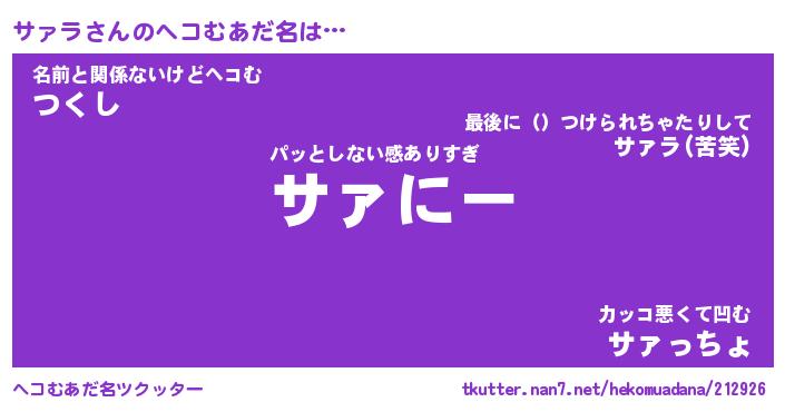 | 意味不明あだ名 | 『ペロリンサァラ』『サァラフォーエバー』 |