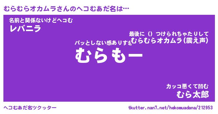 | 男性向けラノベタイトル風あだ名 | 『むらむらオカムラの憂鬱』 |
