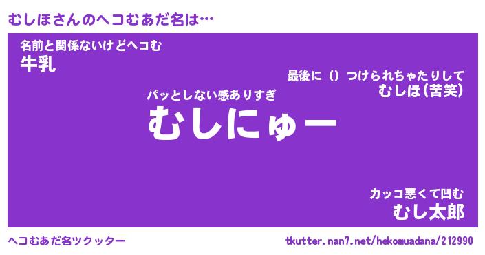 | 男性向けラノベタイトル風あだ名 | 『むしほの憂鬱』 |