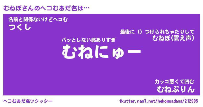 | 2回繰り返すあだ名 | 『むねむね』『むむねね』『ぬめぬめ』 |