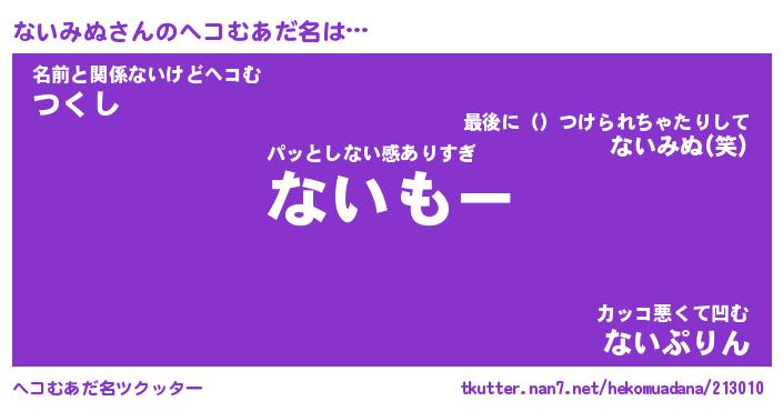 | 意味不明あだ名 | 『ペロリンないみぬ』『永久保存ないみぬ』 |