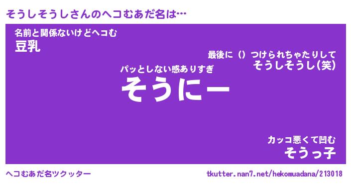 | ポケモン風あだ名 | 『ソウチュウ』『ソウシダネ』 |