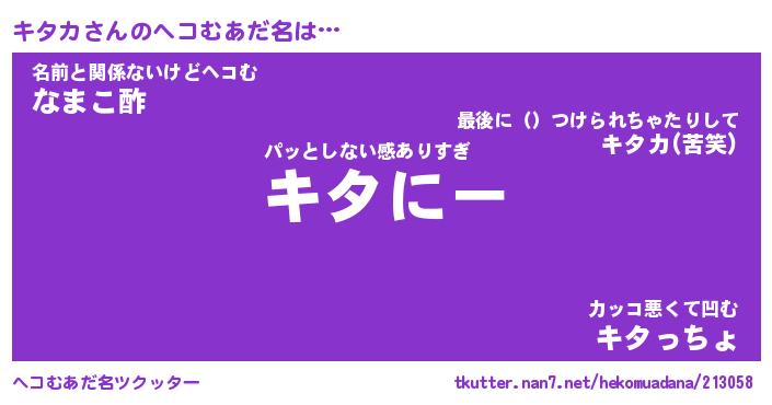 | 男性向けラノベタイトル風あだ名 | 『キタカの憂鬱』 |