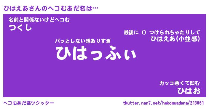| ファンタジー風あだ名 | 『ヒハフェル』『エターナルヒハエアー』 |