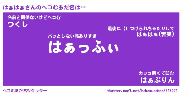 | ポケモン風あだ名 | 『ハァチュウ』『ハァハダネ』 |