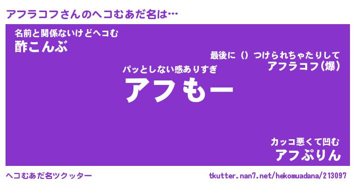 | ポケモン風あだ名 | 『アフチュウ』『アフラダネ』 |